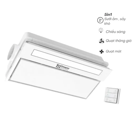 Quạt sưởi nhà tắm KOTTMANN K8 là thế hệ quạt trần tích hợp cao cấp được hãng Häns ra mắt đầu năm 2025, trang bị 5 chức năng thông minh gồm: sưởi ấm – sấy khô – thổi gió mát – thông gió hút mùi – chiếu sáng LED. Một thiết bị duy nhất nhưng hoạt động hiệu quả suốt 4 mùa, giữ cho phòng tắm luôn ấm áp, khô thoáng, sáng sủa và trong lành.